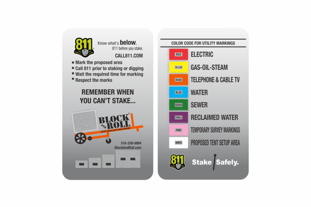 Use these durable plastic cards to distribute to your Tent crews to understand underground utility marking colors.
