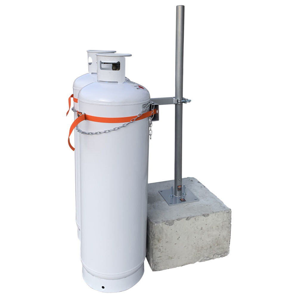 Add this Propane Tank/Cylinder Bracket kit to any Block And Roll® Block to safely store tanks and keep them from tipping over on hard surfaces that can’t be penetrated with a stake.