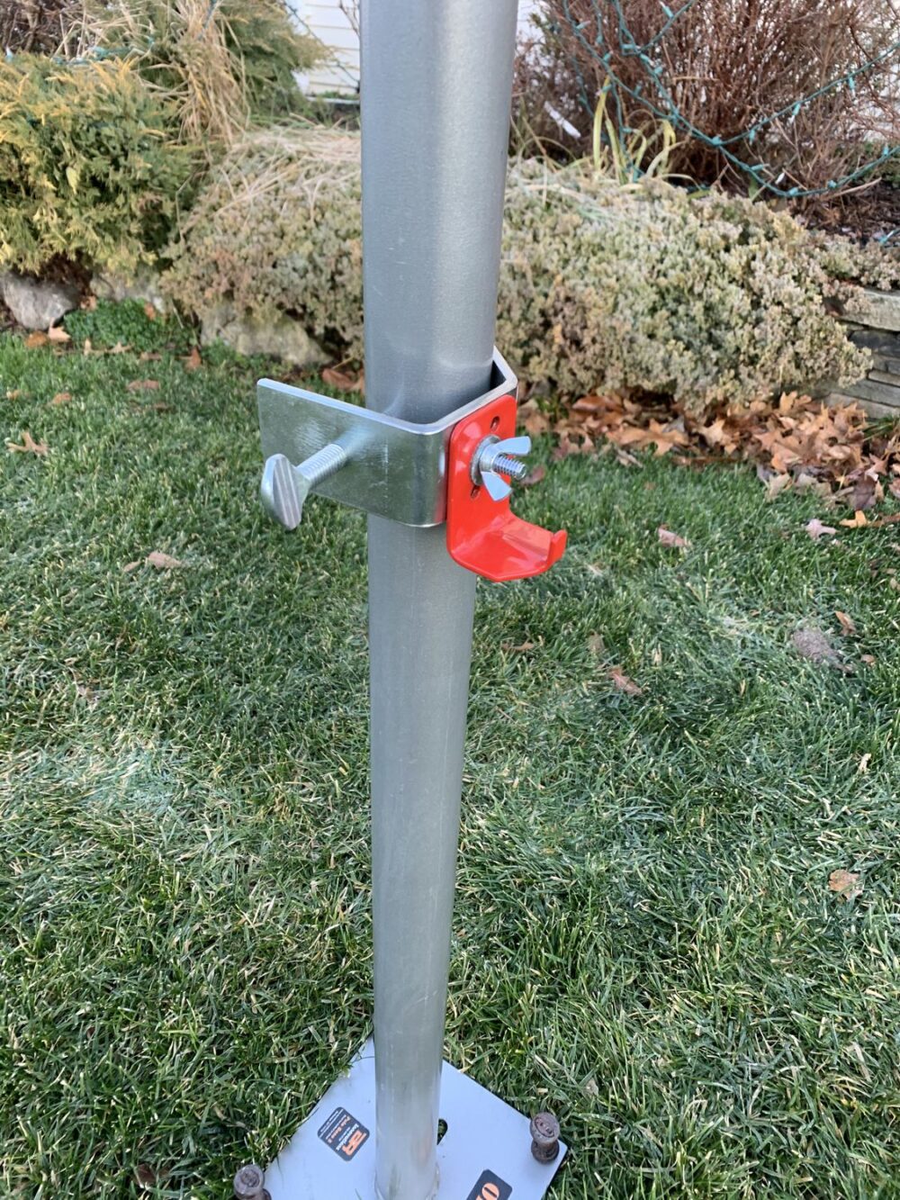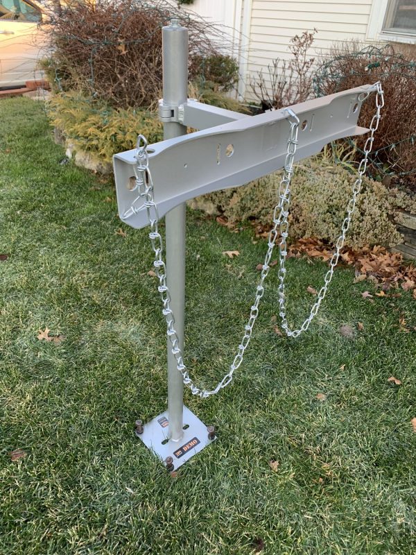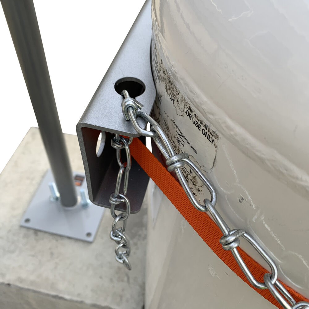 Adjust bracket on pole to hold 30lb-100lb propane tanks.