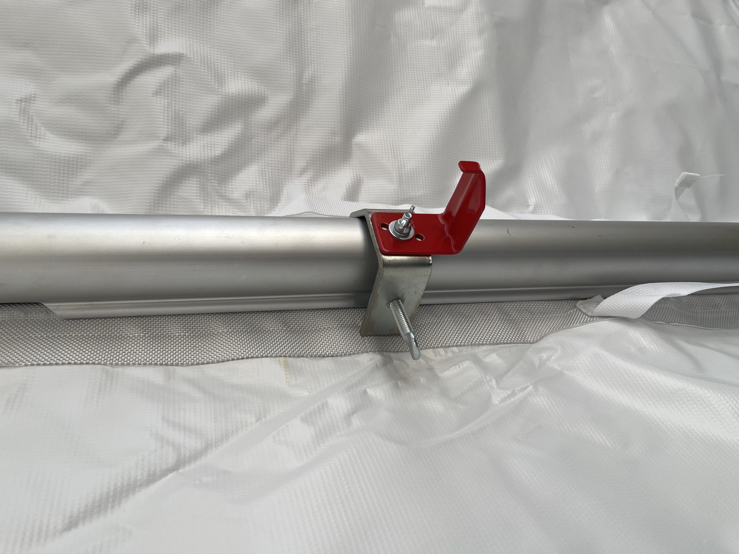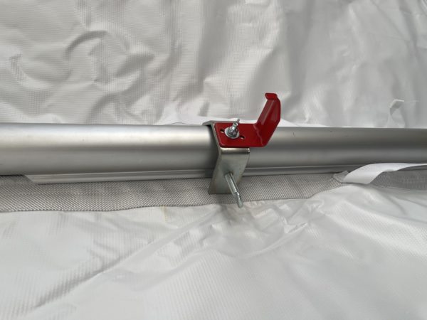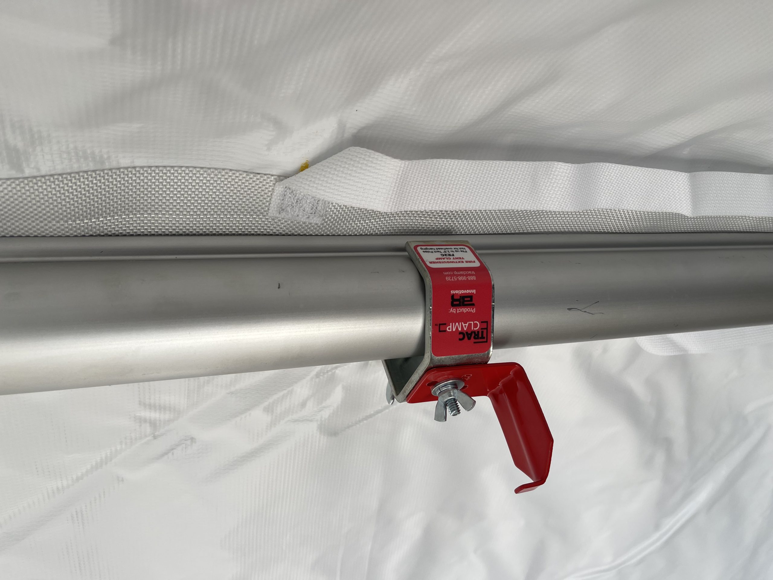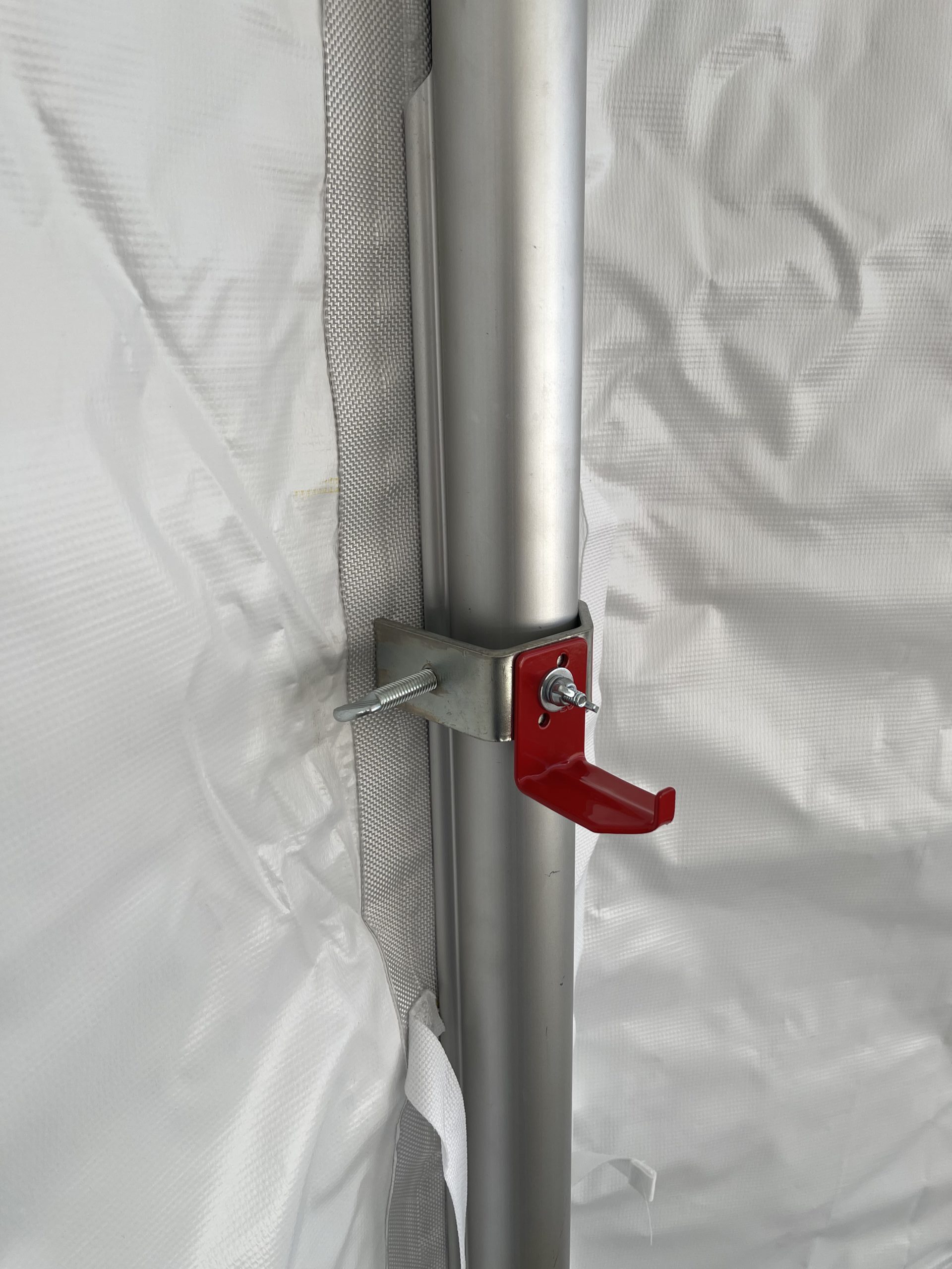 Clamp on Fire Extinguisher bracket fits most round tent poles up to 2.5″ OD. Zinc coated steel bracket.