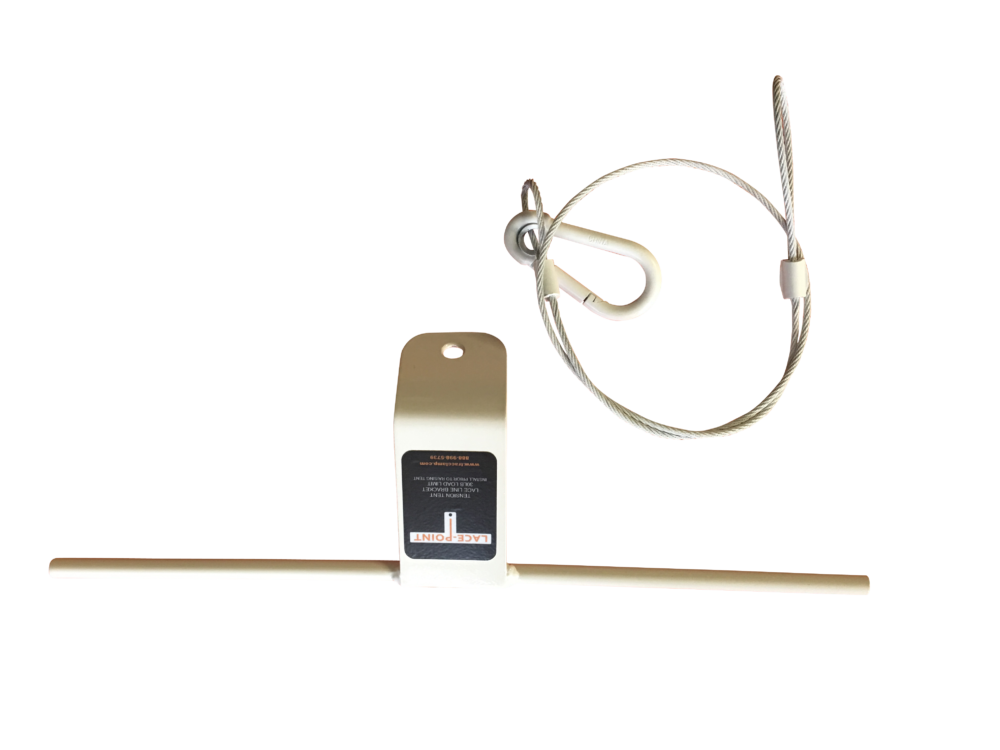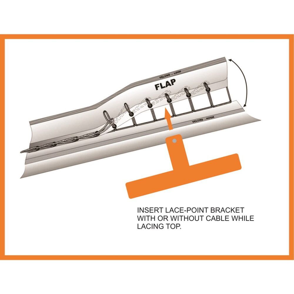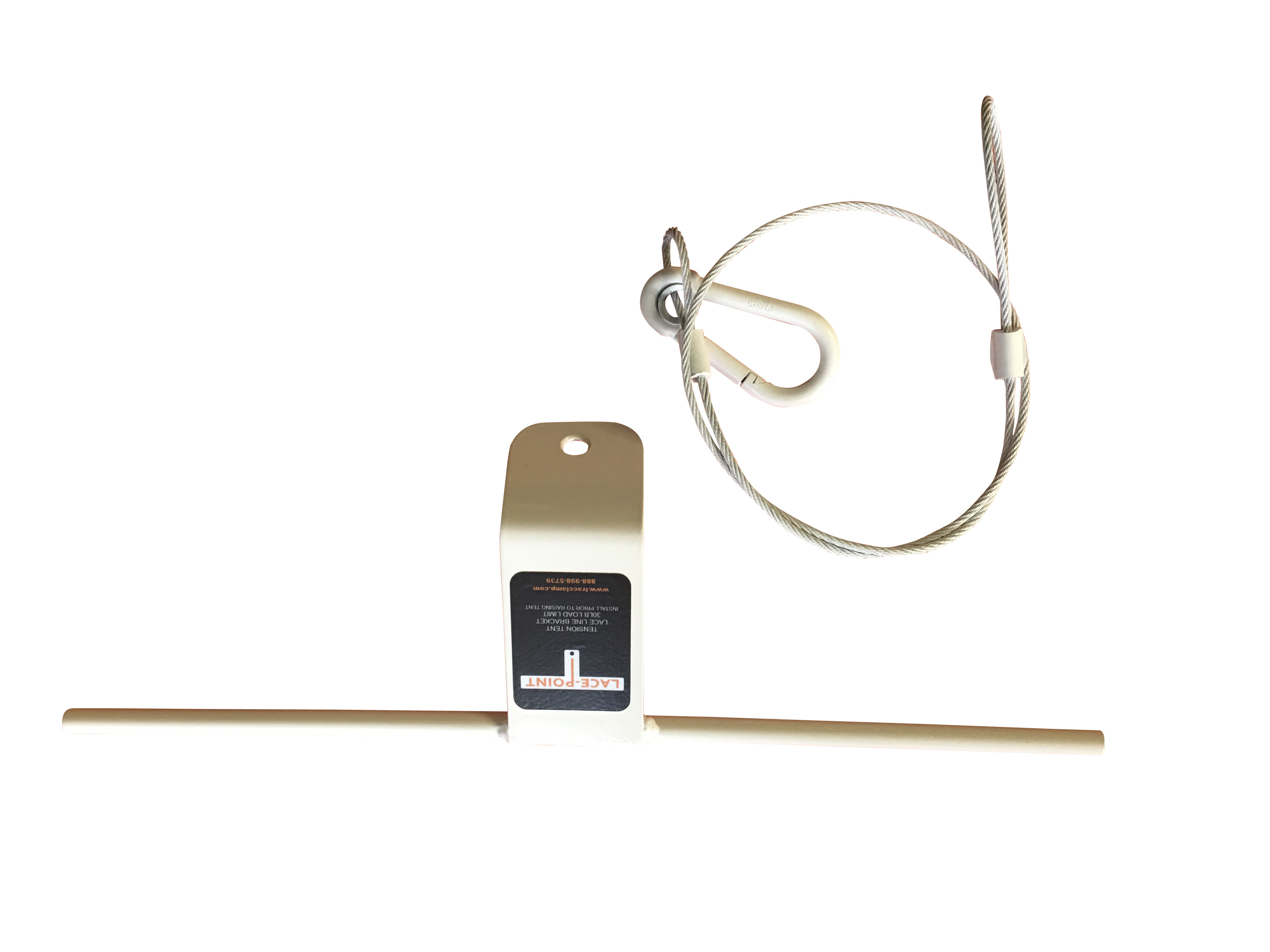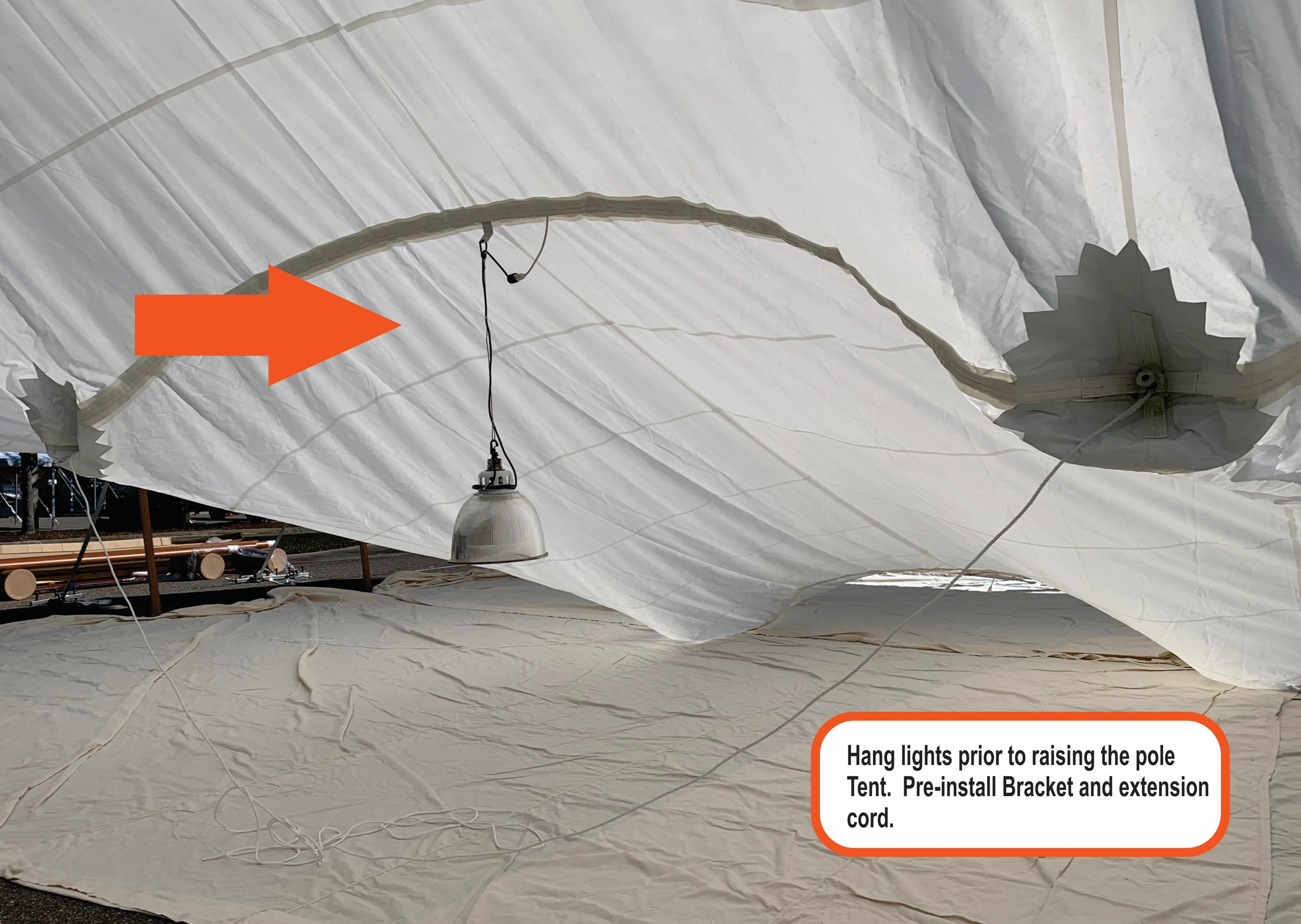 Simply insert the Lace-Point Bracket at any point in your lace line along with your extension cord for powering your light and lace around it as you would normally lace your tent tops. For added ease of installation add your light while raising the center-poles to eliminate the use of a ladder. Includes hanging cable. Aluminum construction with white powder coating.