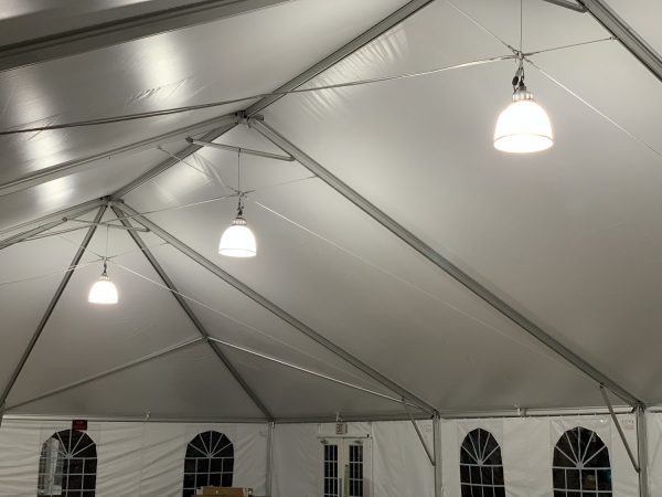 Lighting Cantilever Bracket can attach to any round pipe or truss 1.5″ to 2″ and allow to hang a light or chandelier from the pole. Great for High Peak Frame Tents where there is not a center point to hang a light fixture.