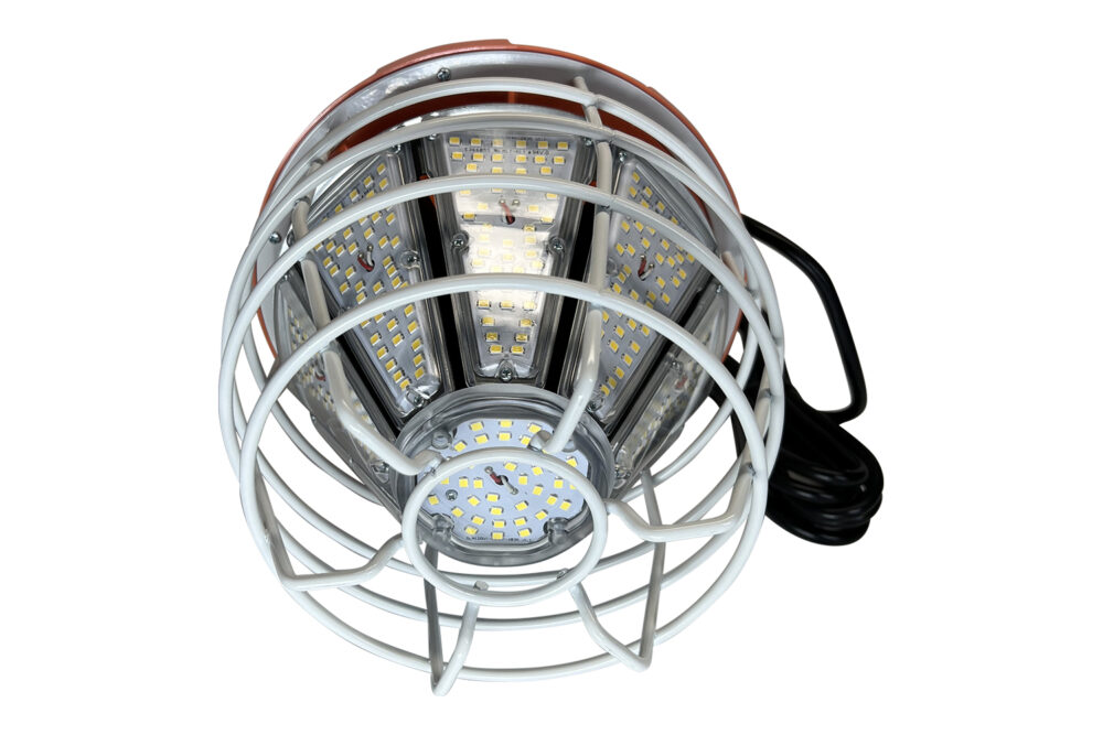 Our hanging work light is great for lighting tents that need general lighting like kitchen tents, medical tents, storage tents and more. These rugged lights feature a protective cage to protect lens and a “daisy chain” outlet for connecting multiple lights together in a row. Built in spring hook at the top makes install easy.