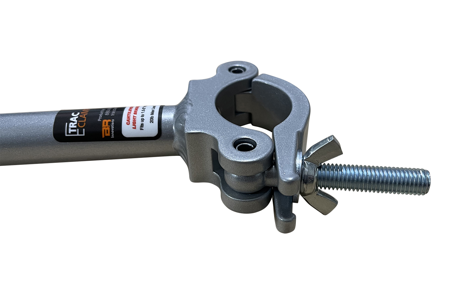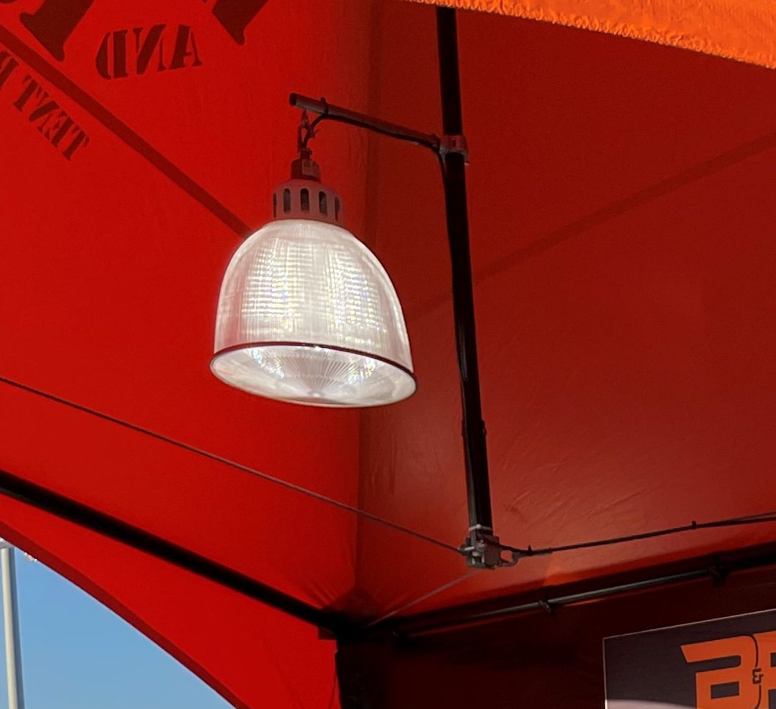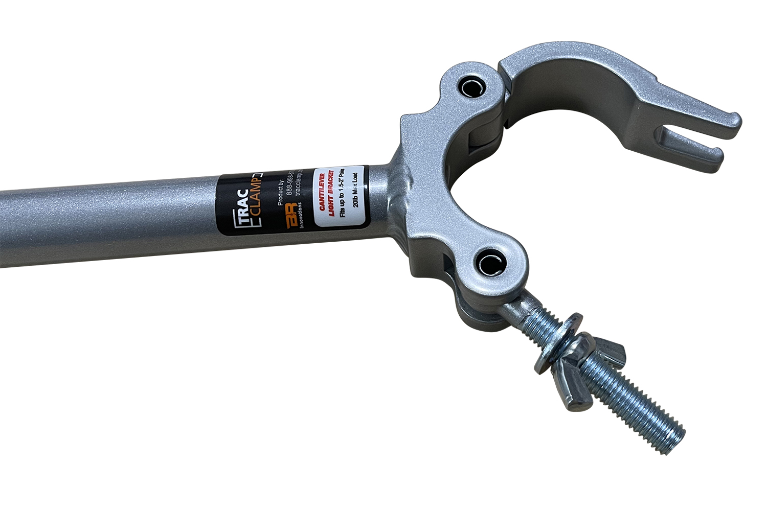 Lighting Cantilever Bracket can attach to any round pipe or truss 1.5″ to 2″ and allow to hang a light or chandelier from the pole. Great for High Peak Frame Tents where there is not a center point to hang a light fixture.