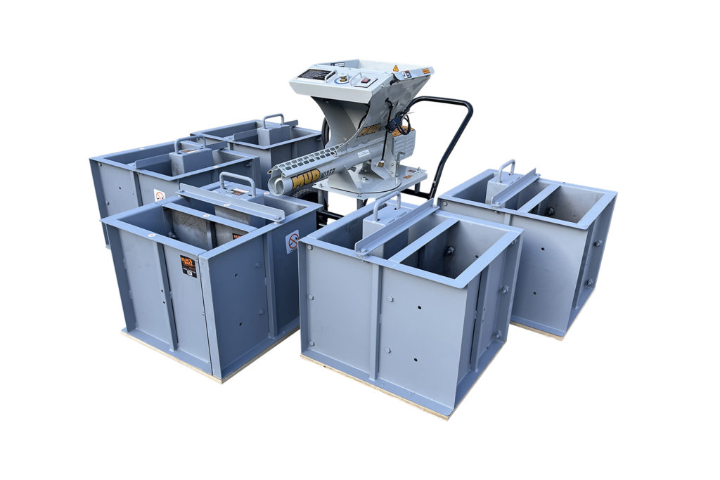The fastest, easiest, multi-use mixer on the market. Featuring a fully-adjustable water input designed to be used with concrete, mortar, or stucco mix – it quickly and effortlessly provides reliable consistency wherever it’s needed. The Mud Mixer is the easiest way to make Block And Roll® Blocks. Whether you are filling one form or 20, just keep adding bags of mix for constant mud output.