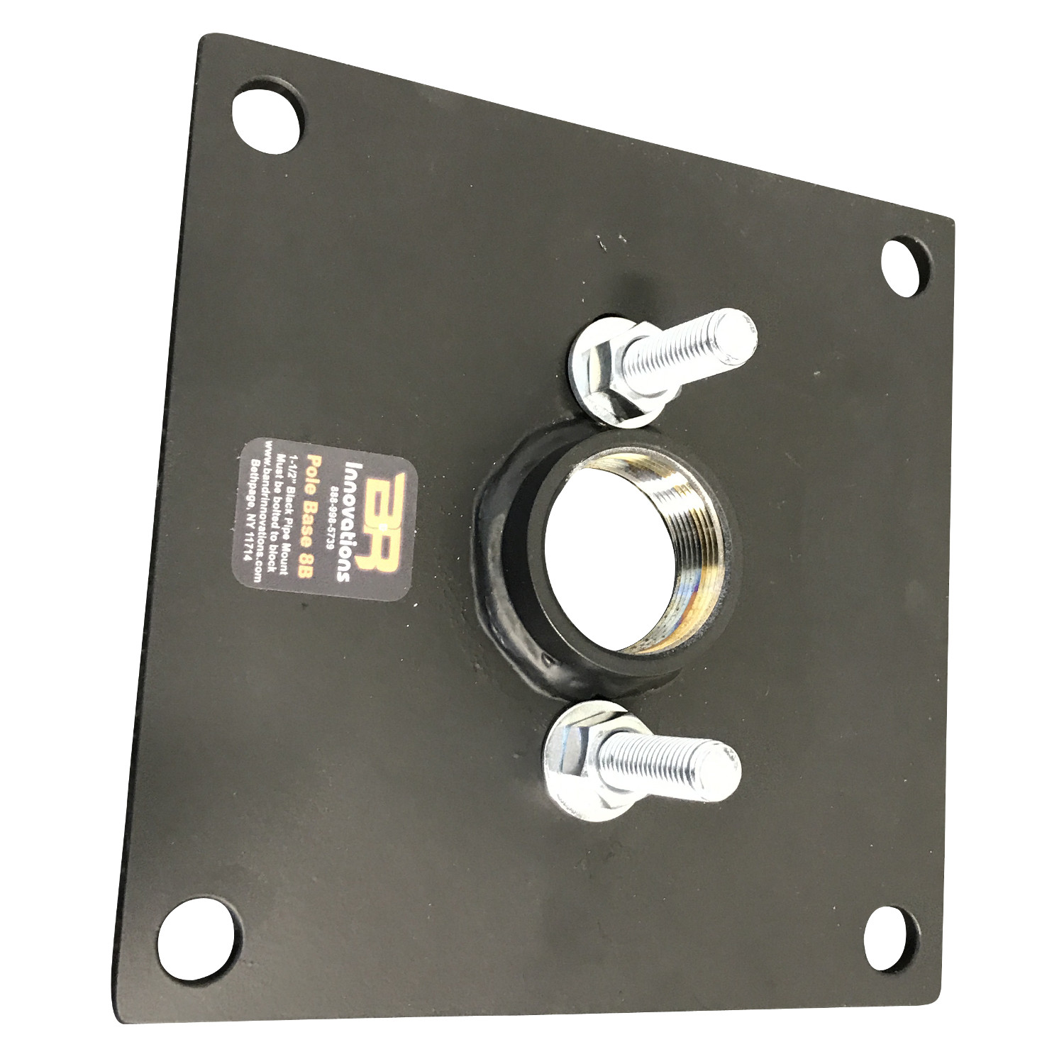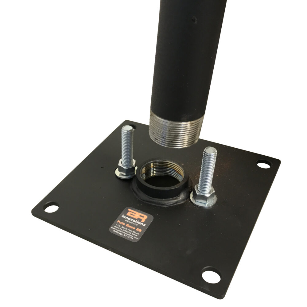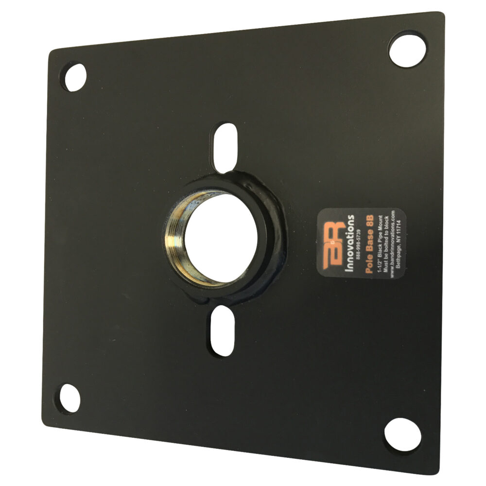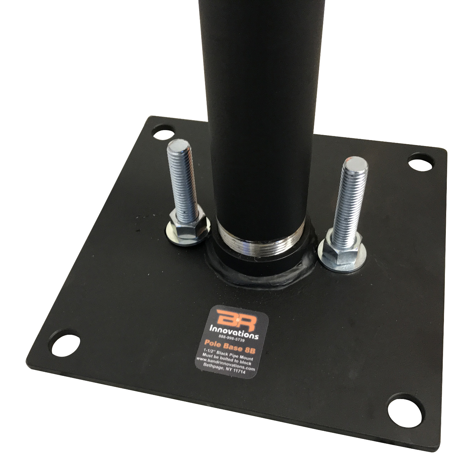 Pole Base 8B is a plate that mounts to a standard Block and Roll Block and can accept a standard 1-1/2″ black pipe.