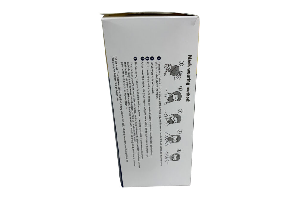 Fold-able, easy to carry and store. The design of head strap can be convenient to hang the mask on the neck when briefly not in use. No staple use to avoid scraping the face. Comfortable to wear; high filtration efficiency (over 95%) with very low breathing resistance and lightweight.