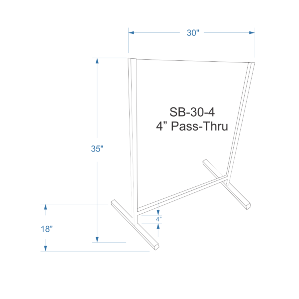 Office Desk or high Counter free standing Sneeze-Block Sneeze and cough guard with 4″ pass-thru