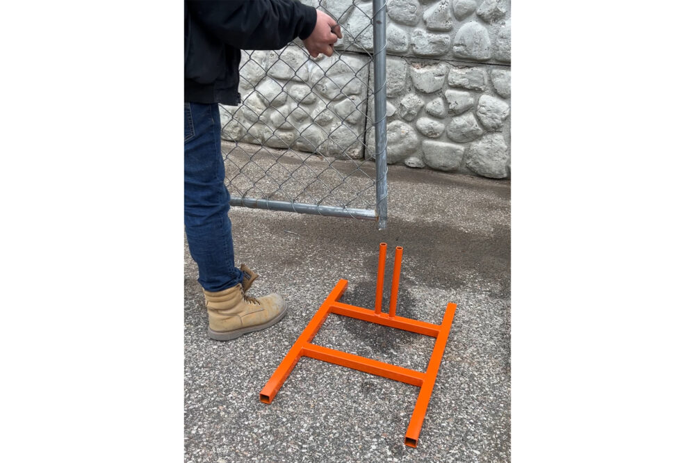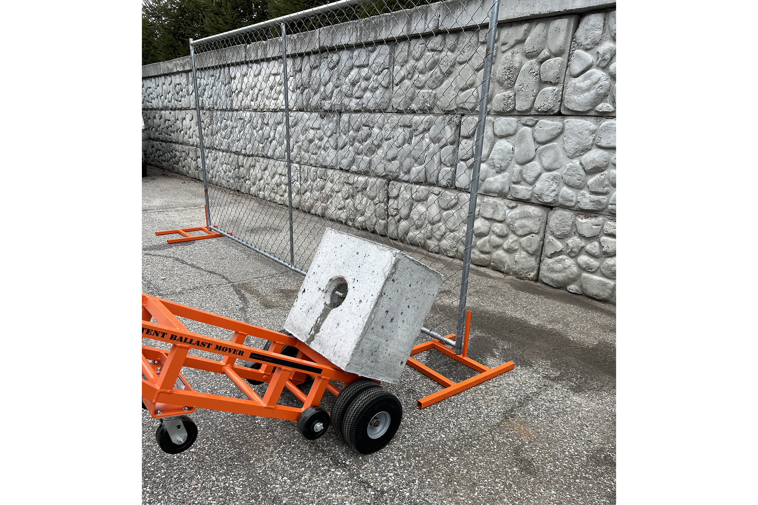 The process is simple—construct your fencing as usual and then effortlessly add blocks using one of our Patented Hand Carts. Say goodbye to the hassle of multiple sandbags—our sturdy steel construction and thoughtful engineering ensure your fencing stays upright, even in windy conditions. Coated in a vibrant orange powder finish, our bases not only provide durability but also stand out for increased visibility.