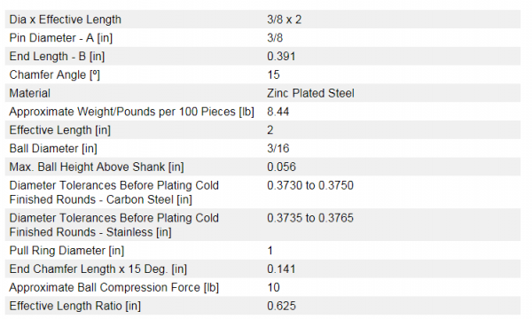 Tent Pin 3/8” X 2” with Ball and Pull Ring