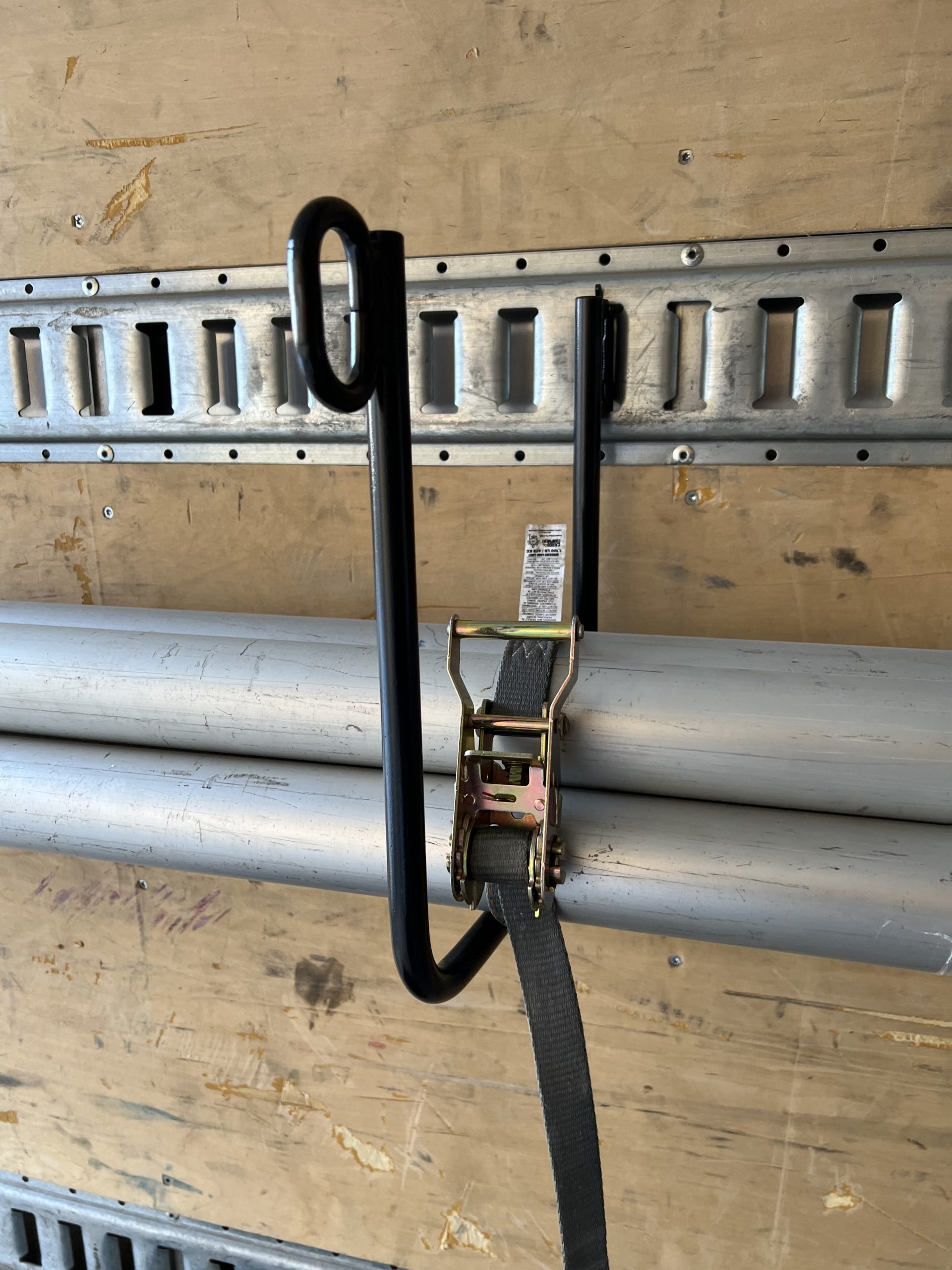 This E-track hanger can be used for many different applications including Tent pipes. and ladders.