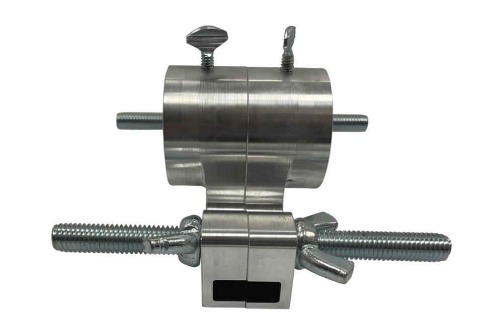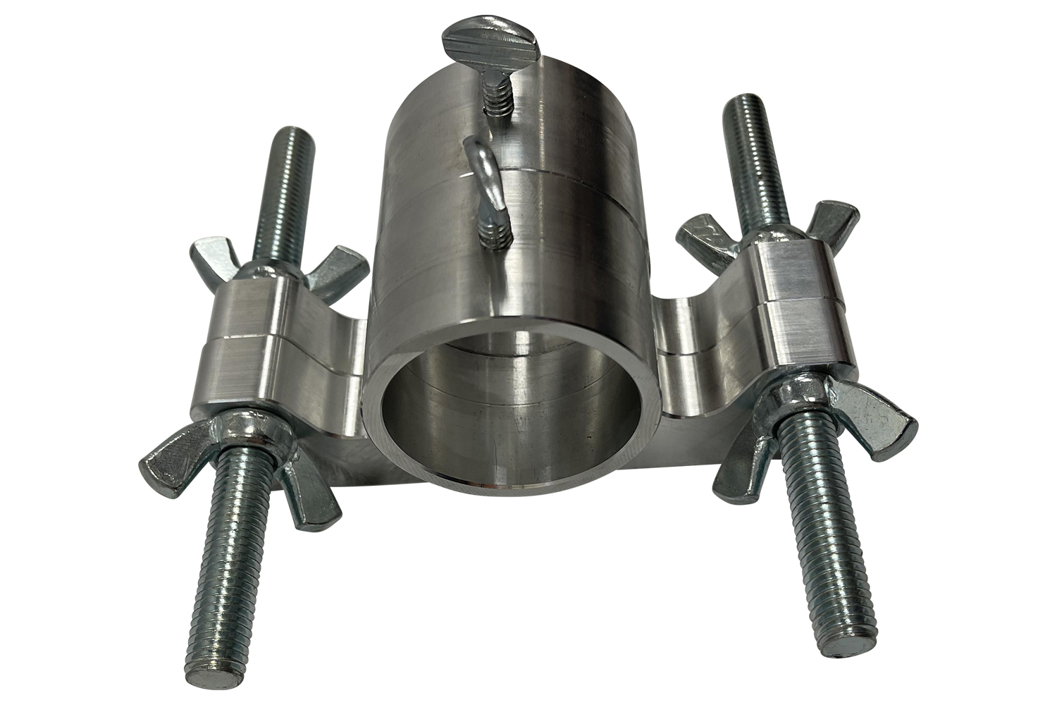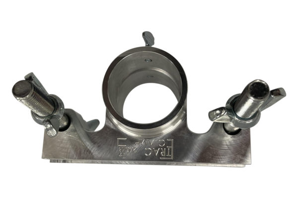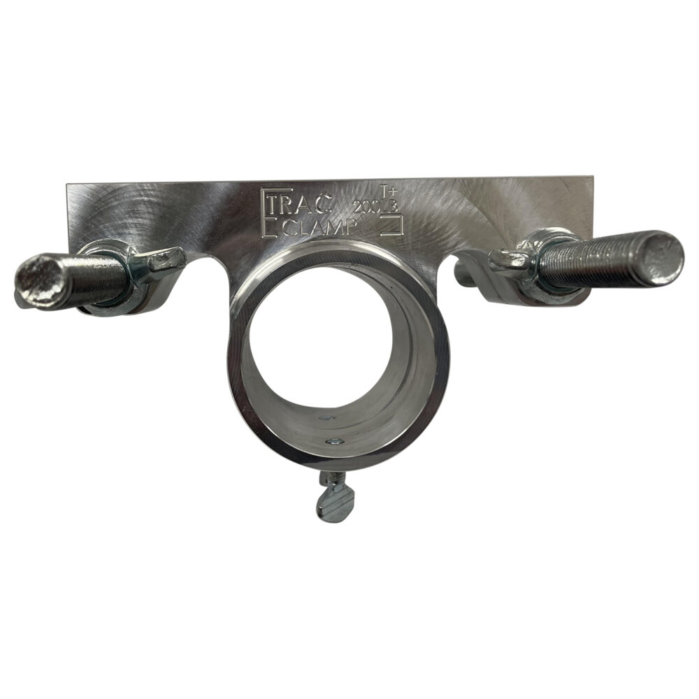 Our Trac Clamp “T” PLUS is an updated version of our Trac Clamp “T” made stronger than ever from solid aluminum. This clamp offers a universal solution for hanging lights and other items in tents with Keder Track. The “T” PLUS clamp is a “T” Bar style rigging solution with a rating of 200lb. Hang multiple lights on the included 48″ 2″ OD bar with standard lighting clamps. With a universal fit for beams with 38mm to 120mm profile, this versatile clamp will solve your light rigging needs for most tents in your inventory.