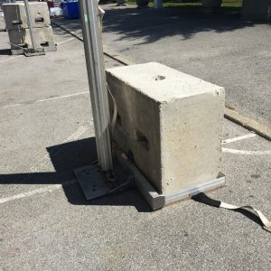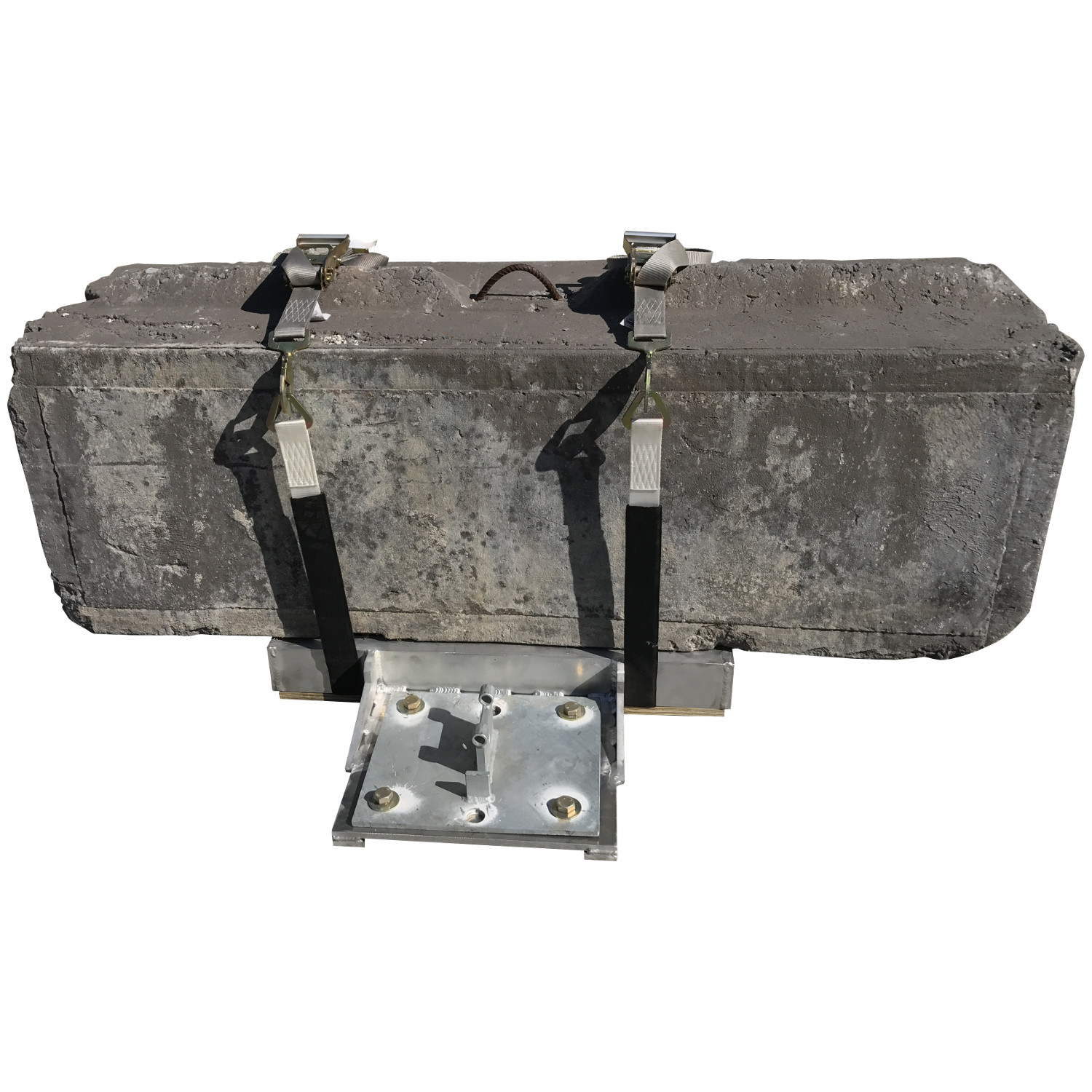 The Universal Block Plate mounts directly to your tent structure and allows placement of most universal landscape concrete blocks. Includes 4 holes for your tent plate bolt pattern. Additional holes may be added for multiple tent systems for $10 per hole.