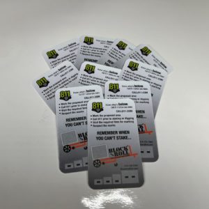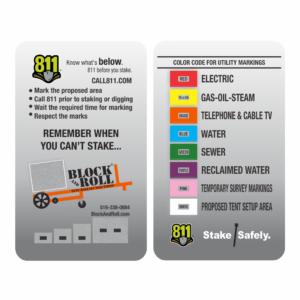 +ShippingTent Location Markout flags are perfect to let dig-safe know where your proposed staking will be (White is the color for Proposed excavation) and for your Tent Crew to know installation location. Markout flags have lines to write in name of tent, size and date to keep in the ground […]