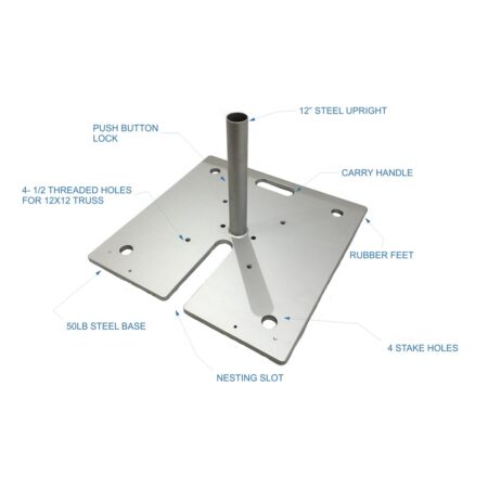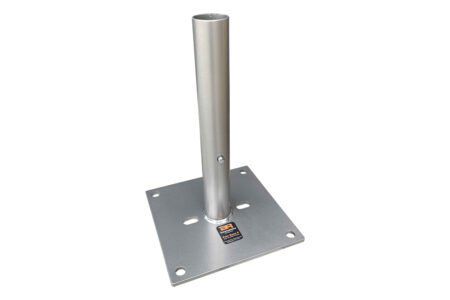 +ShippingPole Base 20B with 1-1/2″ black pipe adapter is a free standing pole base. This can also be mounted to a Block and Roll Block (hardware included) or staked (stakes not included) into the ground for added weight. Treaded hole to accept standard 1-1/2″ black pipe. This plate can also […]